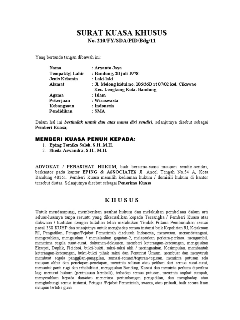 Contoh Surat Kuasa Khusus Ptun Pdf / Doc Contoh Surat Kuasa Untuk Pengajuan Dan Pengurusan Upaya Hukum Banding Ervian Eda Academia Edu - Please fill this form, we will try to respond as soon as possible.. Surat kuasa ini harus ditulis dengan bahasa yang jelas, singkat dan mudah dipahami sehingga orang yang menerima kuasa mengerti maksudnya. Surat kuasa adalah surat yang dibuat untuk memberikan wewenang kepada orang lain dari seseorang. We are a sharing community. 503 sk tun xii 2011 tanggal 02 november 2012 tentang pemberhentian kepala dinas kota ternate propinsi maluku utara terhadap wali kota ternate yang. Surat kuasa khusus meliputi kegiatan tertentu yang dialihkan ke penerima kuasa.