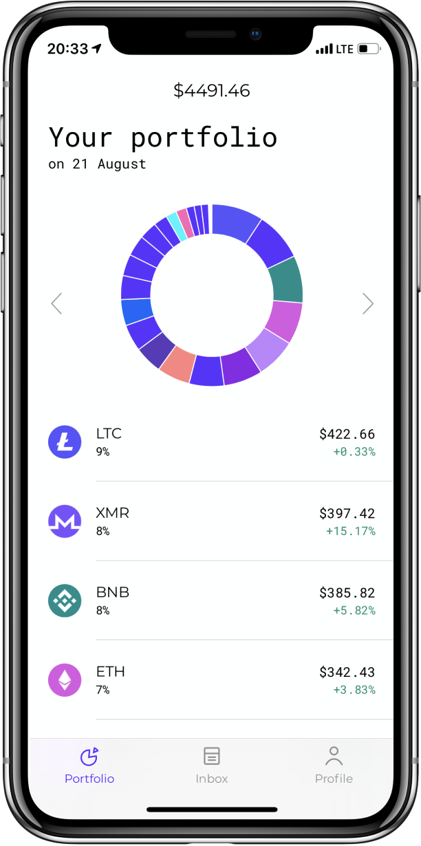You can track portfolio in 90+ fiat currencies including usd, eur.